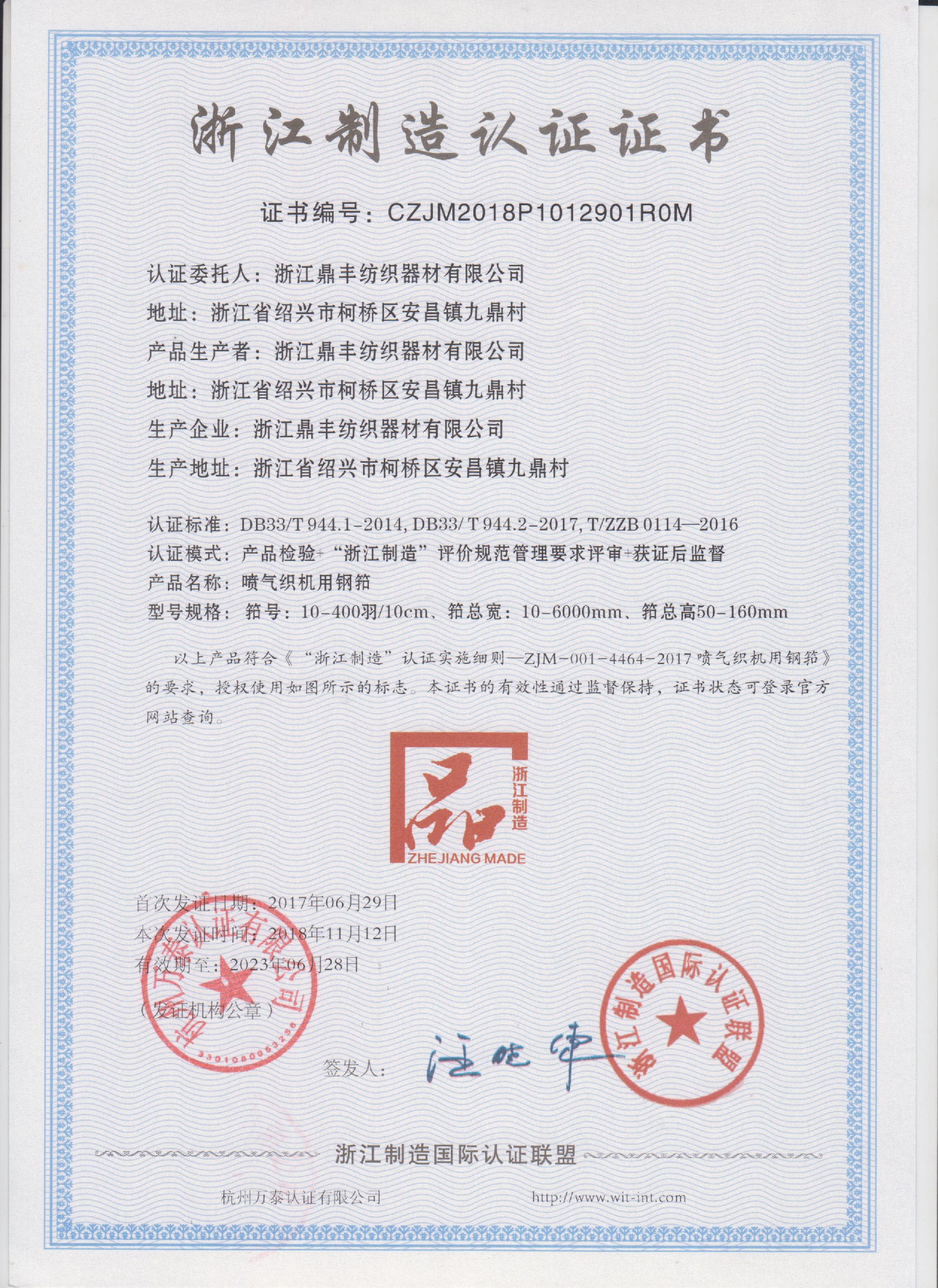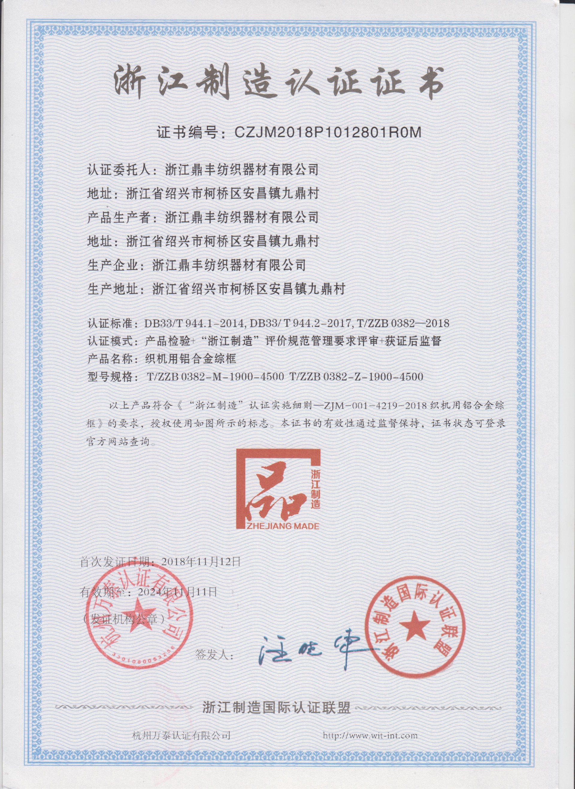 公司現(xiàn)有固定資產(chǎn)6000余萬元,員工300余人,現(xiàn)具有年產(chǎn)噴氣異型筘12萬米,劍桿筘32萬米,噴水筘5萬米,綜框20萬片,鋼片綜2億片,停經(jīng)片1.5億片, 織軸1.2萬套的生產(chǎn)能力。公司“越泉”商標(biāo)被評為“中國馳名商標(biāo)”。公司通過ISO9001 :2015國際質(zhì)量體系認證,ISO14001:2015國際環(huán)境管理體系認證,ISO45001:2018國際職業(yè)健康安全管理體系認證,噴氣織機用鋼筘和織機用鋁合金綜框獲得“浙江制造”品牌認證,公司擁有自營進出口權(quán),產(chǎn)品暢銷全國并遠銷印度、巴基斯坦、土耳其、埃及、哥倫比亞、意大利等國家和地區(qū)。